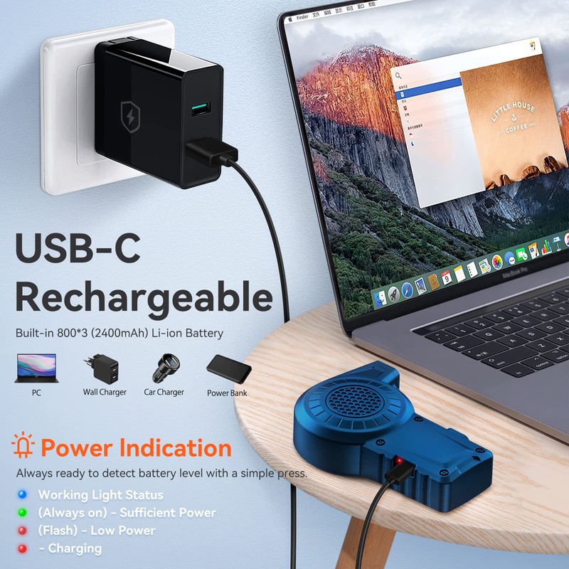 Brushless Motor Mini 35000 RPM: Reesibi C1 Electric Dust Blower with LED Light, Professional Blower for Cleaning Camera Lenses, 2-Speed, 2400 mAh, Air Duster for PC, Keyboard, Blue