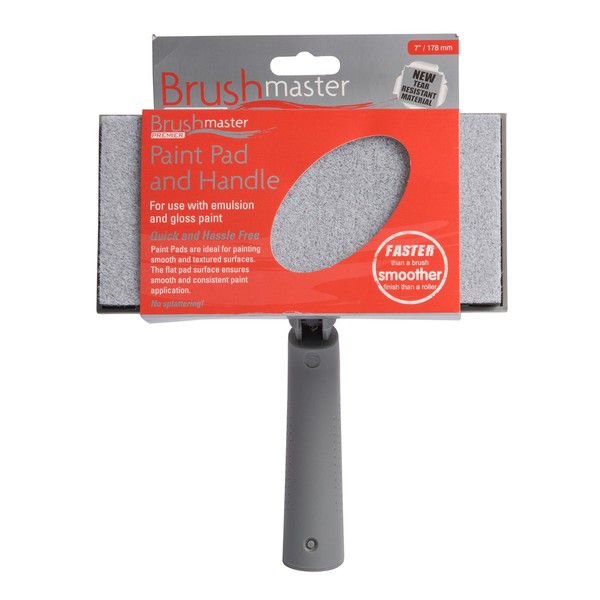 Made from the latest tear resistant flocked material, Brushmaster pads include a barrier between the flock and foam suspension layer to ensure even pad loading and smooth coverage. Brushmaster Paint Pads are also easy to clean, re-usable and can be used with gloss or emulsion paints.