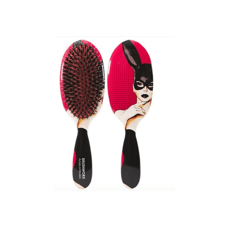 Brushworx Artists and Models Oval Cushion Hair Brush - Bunny Boo is a versatile cushion brush that creates soft, silky hair with incredible shine and lustre, perfect for detangling, blow-drying hair smooth, finishing updos, distributing styling product and brushing out heat styled curls.