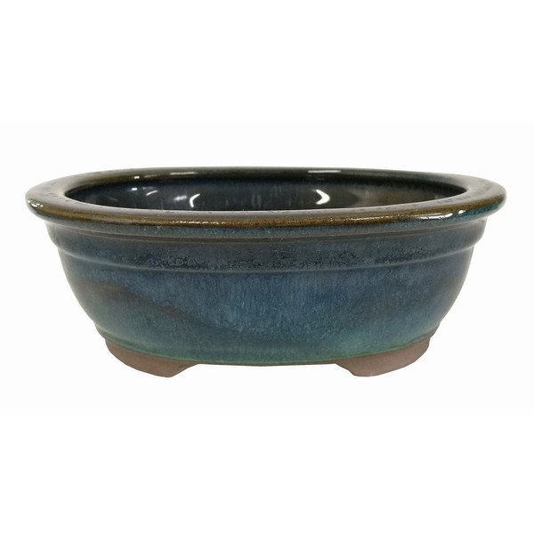Brussel's Bonsai CGO38-6DMG Oval Glazed Ceramic Pot, 6"/Small, Teal
