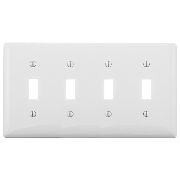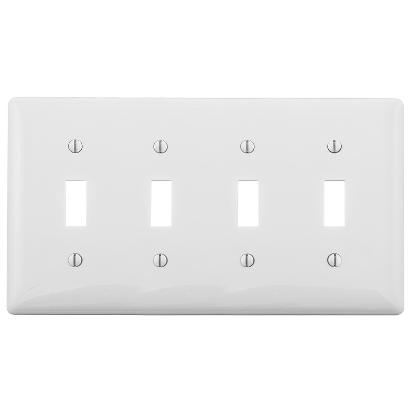 Bryant Electric NP4W 4-Gang 4-Toggle, Standard Size Nylon Wallplate, White
