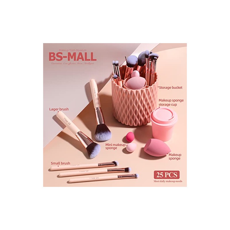 BS-MALL Makeup Brushes Premium Synthetic Foundation Powder Concealers Eye Shadows Makeup 18 Pcs Brush Set with 5 Pcs Makeup sponge Set & Makeup Brush Holder Sponge Case