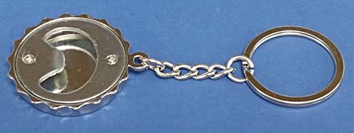 THIS LISTING IS FOR 1 ( ONE ) NEW CHROME PLATED ZINC ALLOY BOTTLE CAP SHAPED KEYCHAIN AND BOTTLE OPENER. THE ROUND BOTTLE CAP PART MEASURES 1-1/2" ( 38mm ) DIAMETER. THE ROUND RECESSED AREA MEASURES 1-1/4" ( 32mm ). THE ROUND DOMED EMBEDDED EPOXY EMBLEM MEASURES 1-1/16" ( 27.5mm ). THE OVERALL MEASUREMENT OF THIS BOTTLE CAP SHAPED KEY CHAIN AND BOTTLE OPENER IS 4" X 1-1/2" ( 100mm x 38mm ).