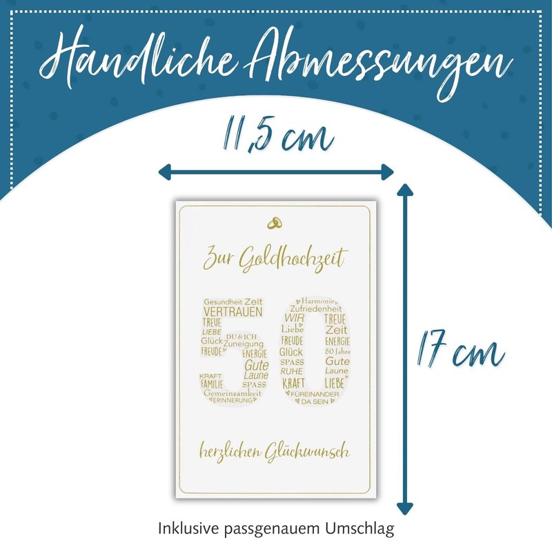 bsb Golden Wedding Card - Loving Gifts for Golden Wedding with Heart Motif - Card for Gold Wedding Anniversary with Envelope - Wedding Anniversary - Card in 11.5 x 17.0 cm