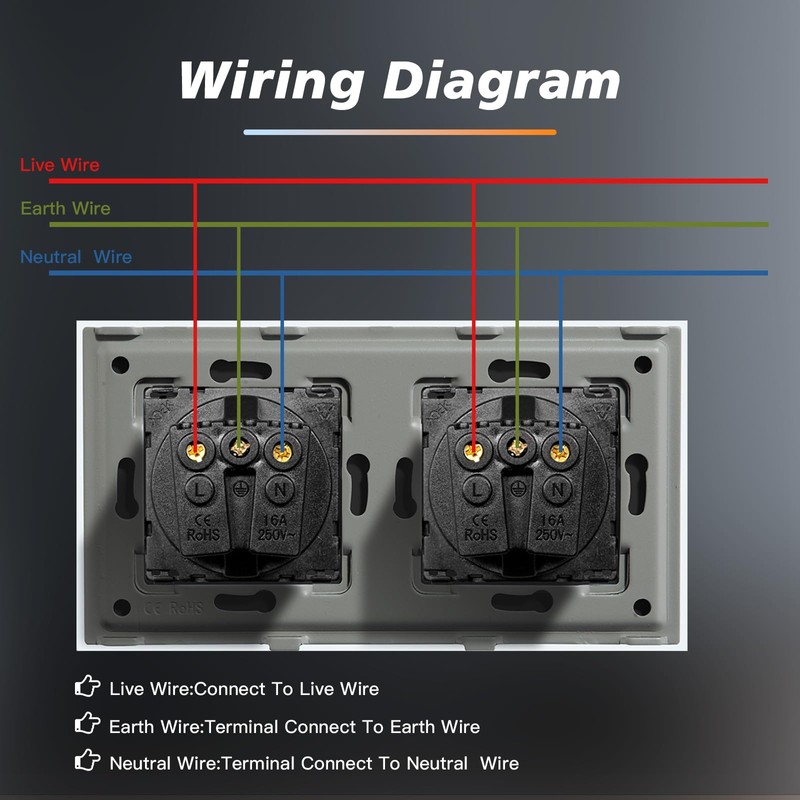 - Single switch installation: in most cases, connect two cables to install the socket. The panel can be easily reassembled if necessary to change the part of the unit.