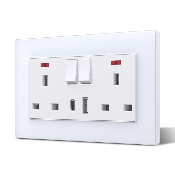 - 【MULTI-FUNCTIONAL SOCKET】The double socket (250V, 13A), along with USB C and USB A (5V, 2100mA) ports, equips our multi-functional wall socket to enable you to charge multiple devices simultaneously. It helps you say goodbye to cable clutter and keep your space organized.