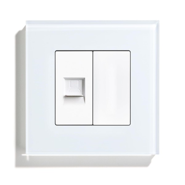 BSEED Wall Socket EU Standard 1/2 PC RJ45 Cat5 Ethernet Socket Network Socket LAN Socket Flush-Mounted with 1/2 Blank Socket Crystal Glass Plate White 86 mm