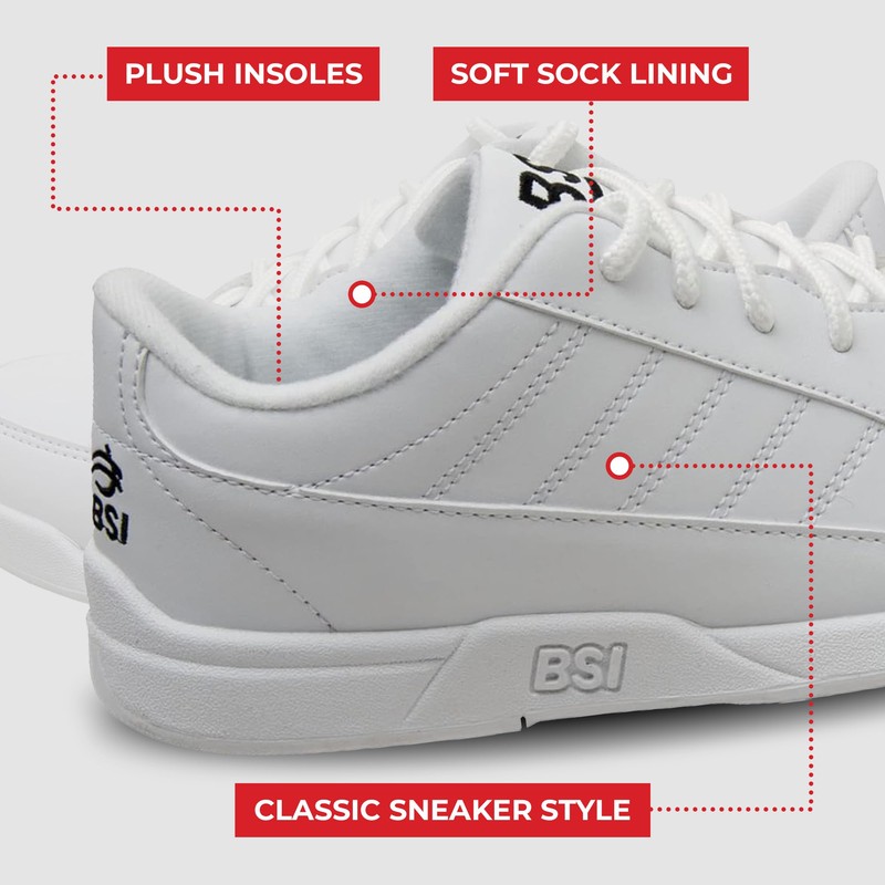 - STRIKE WITH STYLE: BSI Youth Boys Sport White/Black Bowling Shoes are a game-changer, offering the perfect combo of sleek style and high-performance features to keep your little bowler looking sharp and playing their best