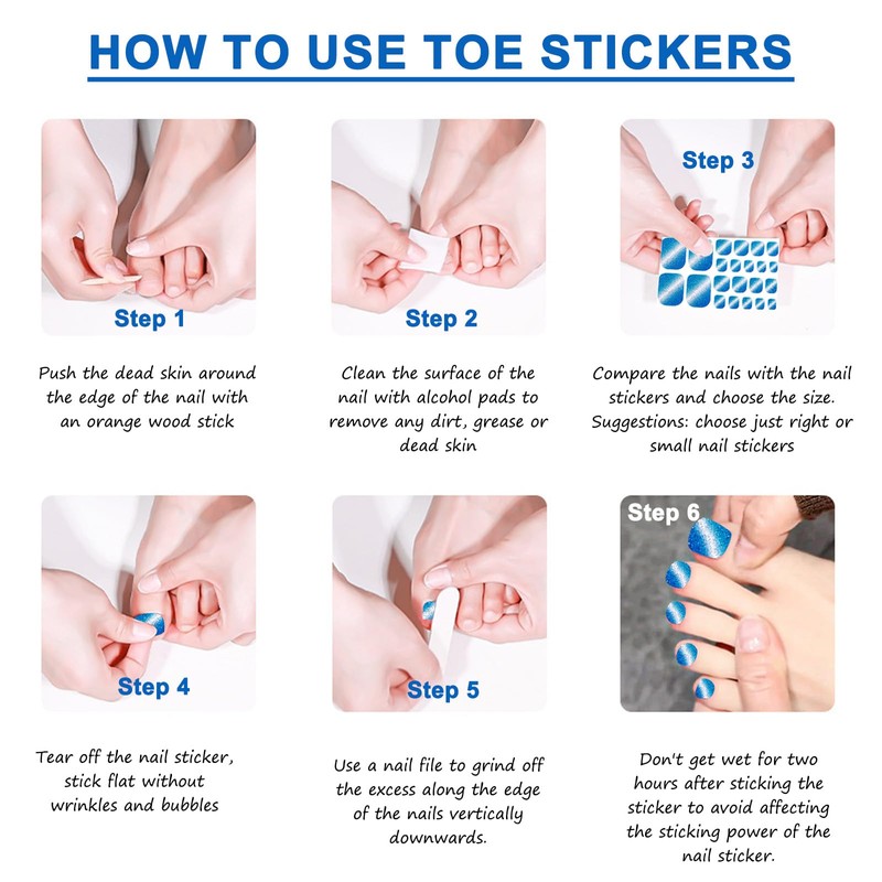 - 【Lange halten】Die wasserdichte Funktion sorgt dafür, dass es in mehreren Tagen schön aussieht. Keine Sorge, es löst sich in kurzer Zeit ab. Um die Klebekraft der nagelfolie für fußnägel nicht zu beeinträchtigen, sollten Sie diese innerhalb von zwei Stunden nach dem Aufkleben möglichst nicht mit Wasser in Berührung bringen.