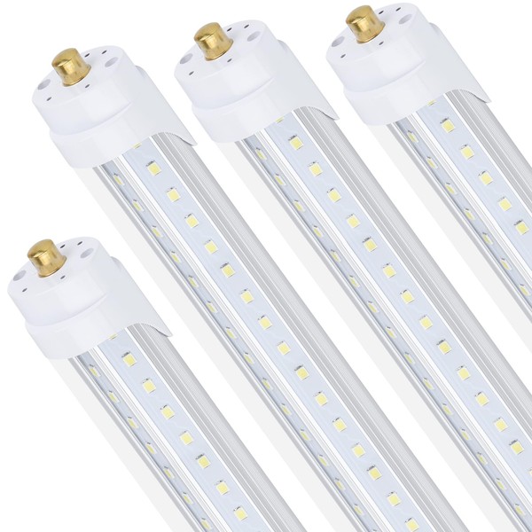 BSK.BESTKA (4-Pack),T8/T10/T12 8FT LED Tube Light, Single Pin FA8 Base, 100W 15000LM 6000K Cold White, 270 Degree V Shaped LED Fluorescent Bulb (250W Equiv.), Clear Cover, Dual-Ended Power