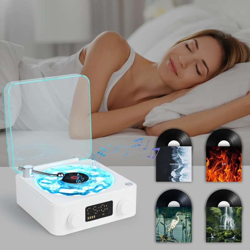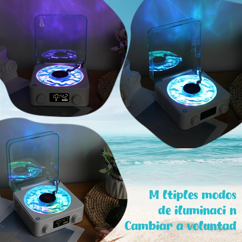 BSMKD Reproductor de Vinilo Waves Con Altavoz Bluetooth, Luces Ajustables, Sonido Estéreo y Ayuda Para Dormir