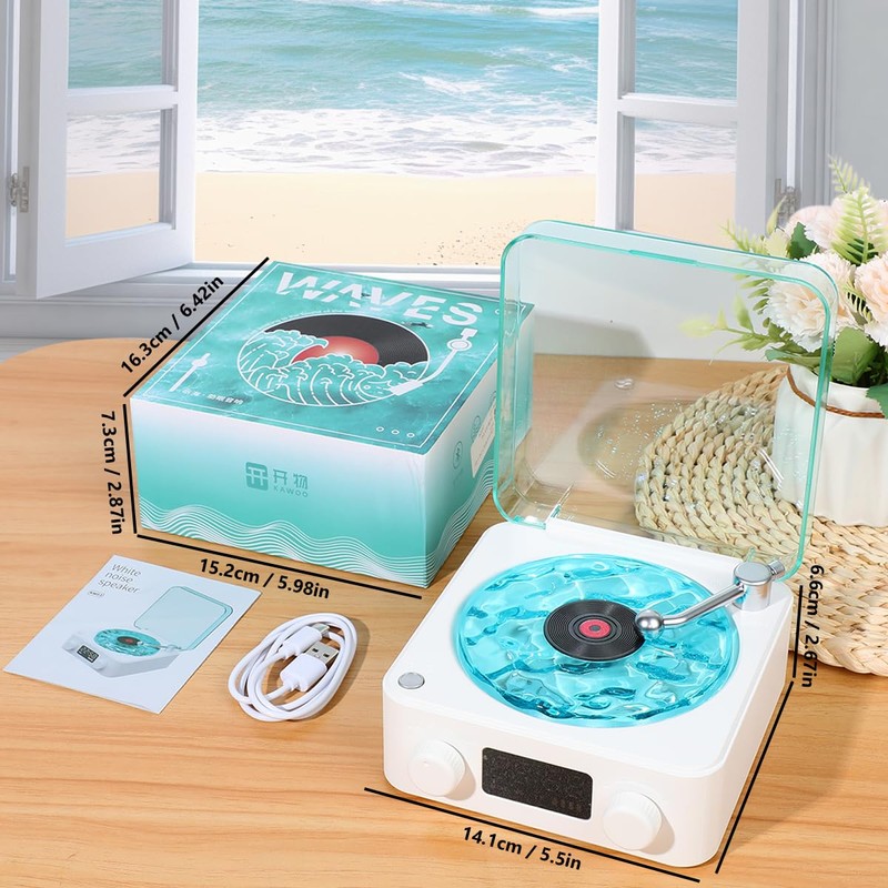 - 【4 Modos de Reproducción】Nuestro The Waves Vinyl Player proporciona cuatro efectos de sonido naturales, brindando una experiencia de sonido envolvente envolvente de 360°para ayudarte a relajarte y dormir mejor. Ya sea que prefiera el relajante sonido de las olas del océano o desee una lista de reproducción personalizada, puede cambiar fácilmente entre diferentes opciones de sonido con nuestro modo de ruido blanco, modo Bluetooth, modo de tarjeta TF y modo AUX