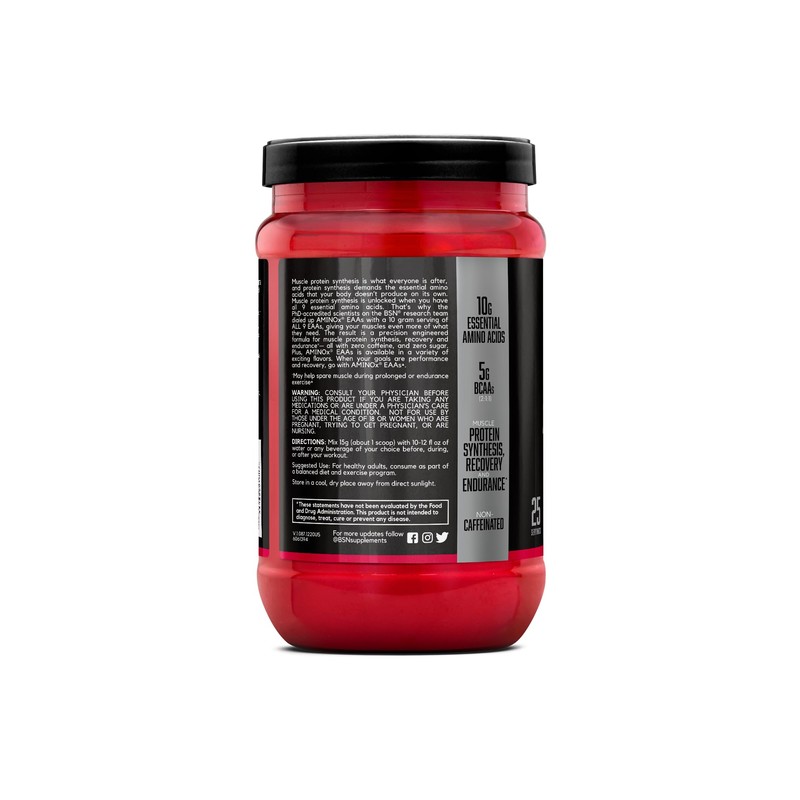 Muscle protein synthesis is what everyone is after, and protein synthesis demands the ESSENTIAL amino acids that your body doesn't produce on its own. Muscle protein synthesis is unlocked when you have all 9 essential amino acids. That's why the PhD-accredited scientists on the BSN research team dialed up AMINOx EAAs with an industrial strength 10 gram serving of ALL 9 EAAs, giving your muscles even more of what they need. The result is a precision engineered formula for muscle protein synthesis, recovery and endurance all with zero caffeine, and zero sugar. Plus, AMINOx EAAs is available in a variety of exciting flavors. When your goals are performance and recovery, go with AMINOx EAAs.