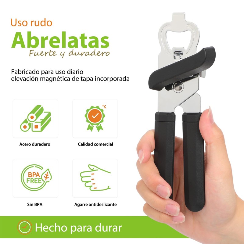 • 【Abrelatas de acero inoxidable】Este elegante Abrelatas cuenta con una afilada rueda de corte de acero inoxidable que perfora fácilmente y corta suavemente las latas. Diseñado teniendo en cuenta la durabilidad, funciona increíblemente bien y está construido para durar.【Mango de agarre suave de gran tamaño】proporciona amortiguación y control adicionales para un uso seguro, incluso con las manos mojadas, especialmente para aquellos con artritis. Ideal para personas mayores. El tamaño total es de 8,75 pulgadas de largo, adecuado para la mayoría de las personas.