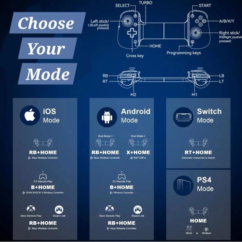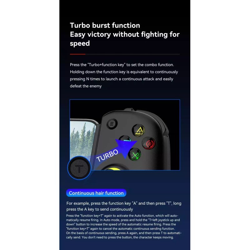 - Multi-Functional Mobile Controller: The mobile gaming controller with responsive dual Hall-Rocker, dual Hall-Trigger, clickable thumbsticks, turbo, dual vibrate, 6-axis gyro, and 2 programmable macro buttons, as well as ABXY key-value interchange function, press the 'Y+A+HOME' keys to switch the ABXY key value from Xbox setting to Switch setting; Lets you freely switch between the Xbox layout and Switch layout