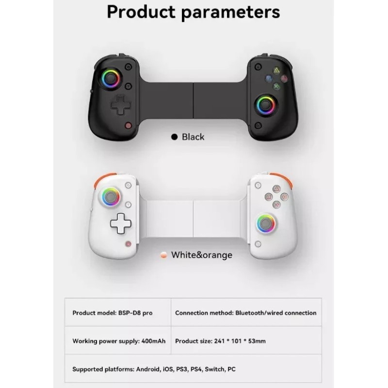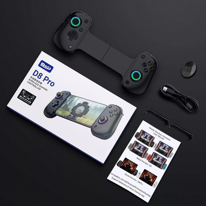 - Package Includes: 1 D8Pro game controller, 1 Type-C charging cable, 1 disk directional Key, 2 pads for iPad/Tablet and 1 user manual