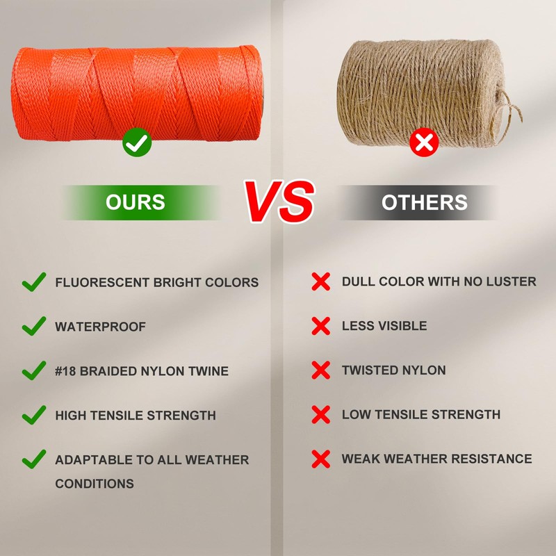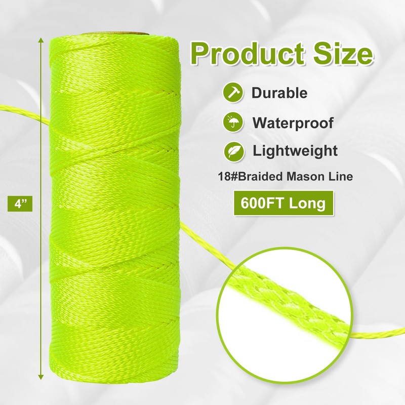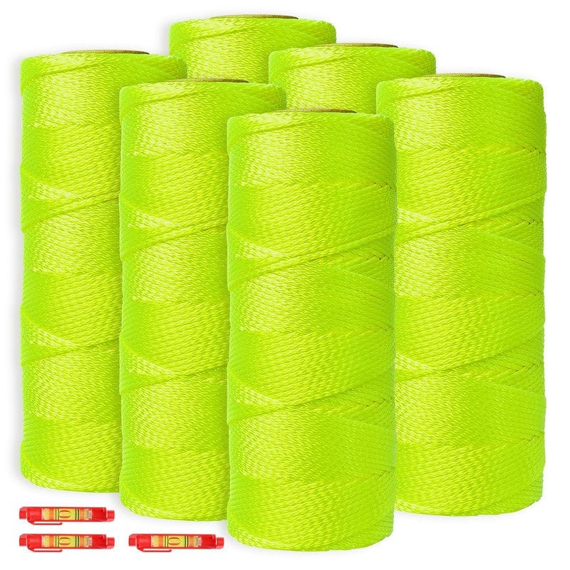 - A set of 6 rolls-each #18 string lineis 182.88 meters (600 feet) long, providing ample length to meet all usage requirements. This rope is fluorescent, making it very noticeable and easy to spot.In addition, we are equipped with 3 hanging bubble line level tool for use