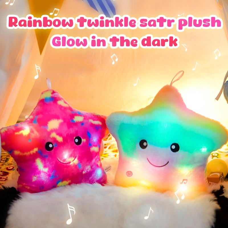 - ADORABLE STAR IMAGE: Our musical glow pillow is in the shape of twinkle star, looking cute and adorable. It’s a very cute pillow, which can bring you a good mood. And enough cotton for this star pillow makes it more plump and vivid.