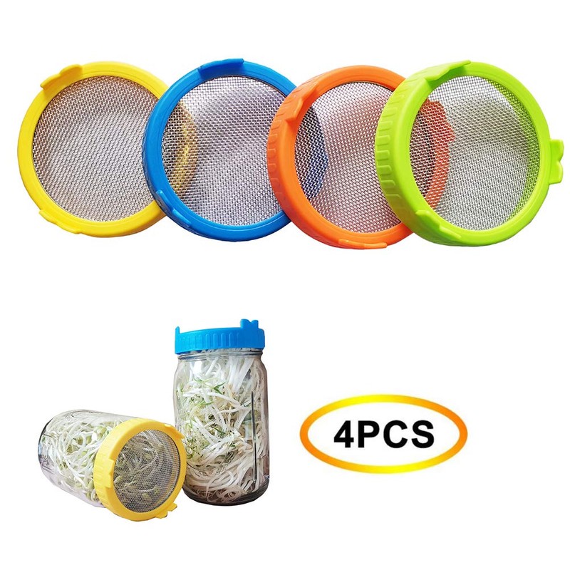 BSTCAR 4 Stainless Steel Strainers, 86 mm Wide Mouth Preserving Jars, Sprout Maker with Stand (Without Bottle)