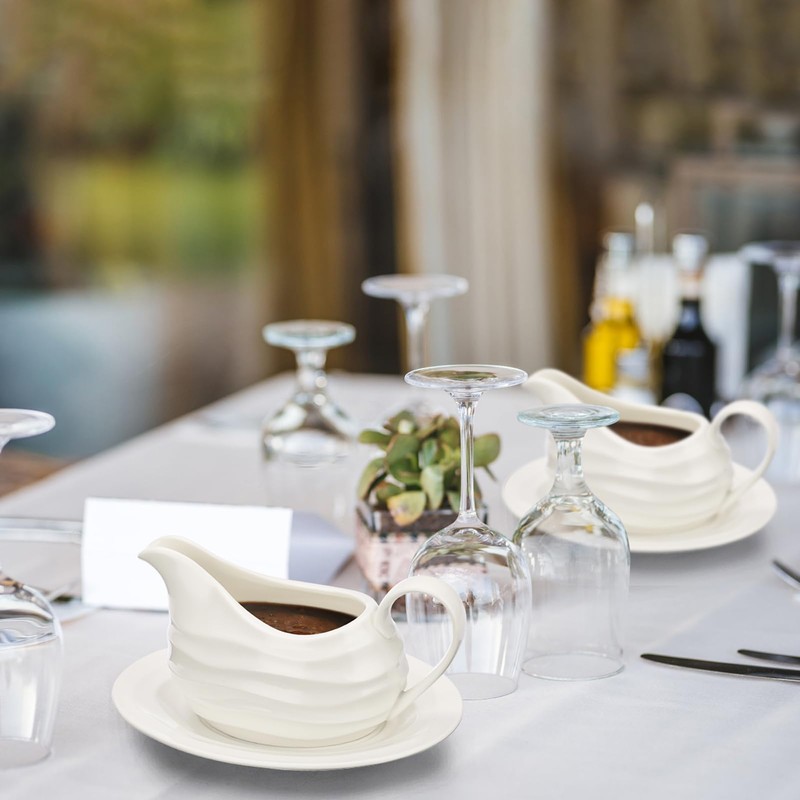 1x White Ceramic Gravy Boat with Tray and Spoon (Accessories are not included)