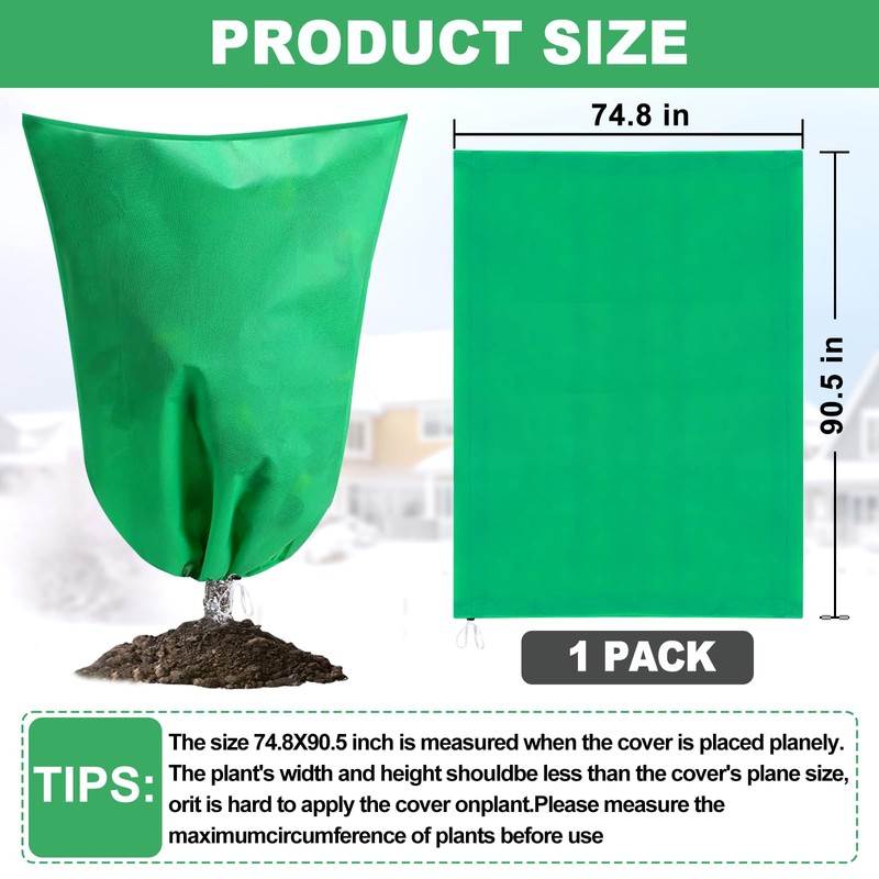 - Plant Covers: The package includes 1PC plant protection bags. The flat size of the cover is 74.8"X 90.5".