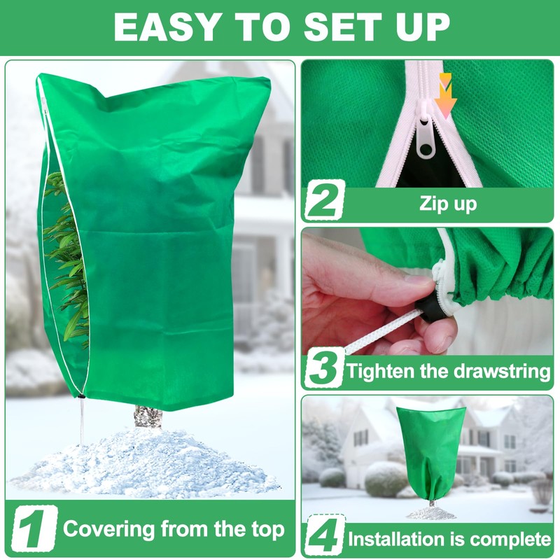 - Frost Cover With Zipper & Drawstring: Zipper design is easy to cover or remove, making it convenient for watering or checking the condition of plants. Adjustable drawstring to prevent damage to plants from cold ground winds.