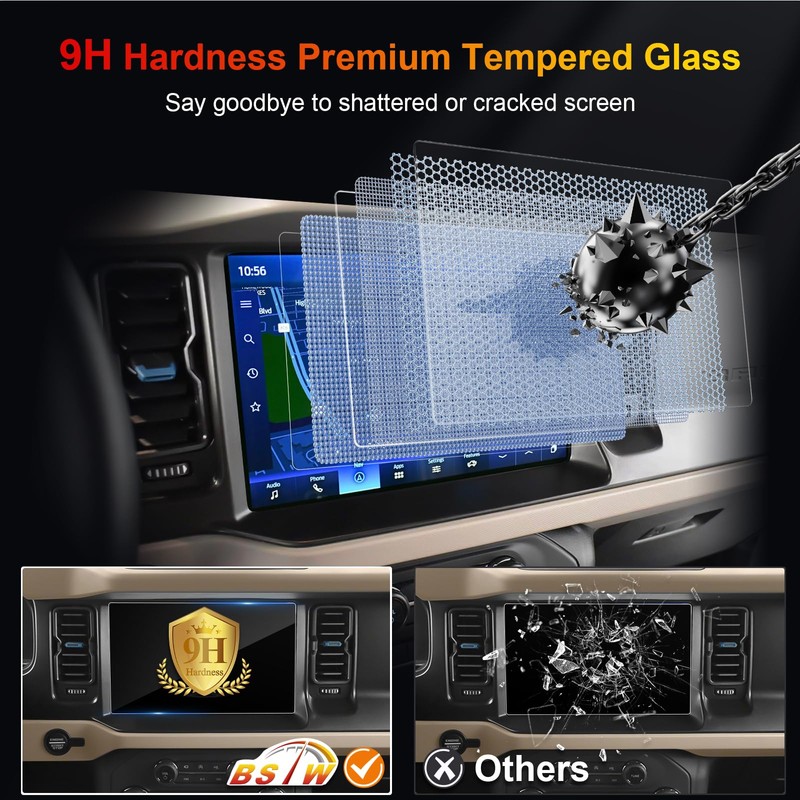- 9H Hardness for Maximum Protection: Protect your investment with the toughest 9H tempered glass on the market, built to resist even the toughest scratches, bumps, and accidental impacts. Your Bronco 12-inch touchscreen will stay flawless for years