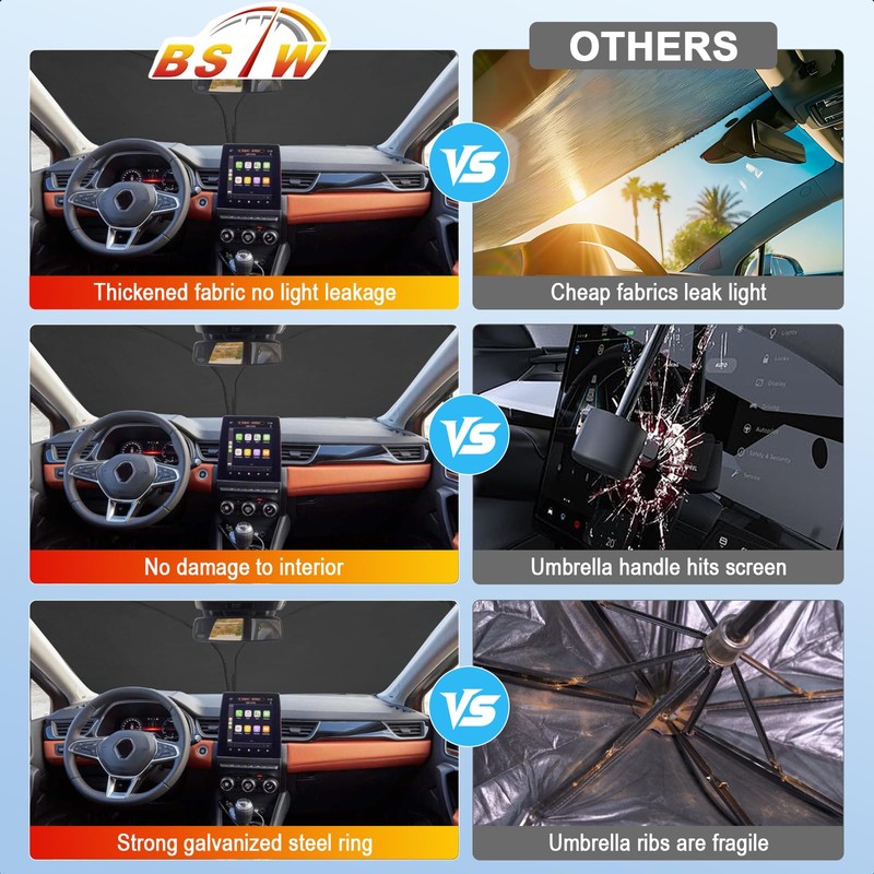 - Senken Temperatur im AutoBSTW Sonnenblende kann effektiv blockieren die direkte Sonneneinstrahlung, die Vermeidung der Auto direkt an die hei?e Sonne ausgesetzt, reduzieren die Temperatur im Inneren des Autos und der Fahrkomfort erh?ht wird.