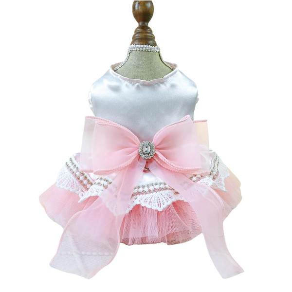 BT Bear Small Dog Dress,Dog Dress Puppy Skirt Retro Bow Dog Princess Dresses Dog Tutu Skirt Dog Wedding Lace Dress for Cats Small Dog Girl(Pink,S)