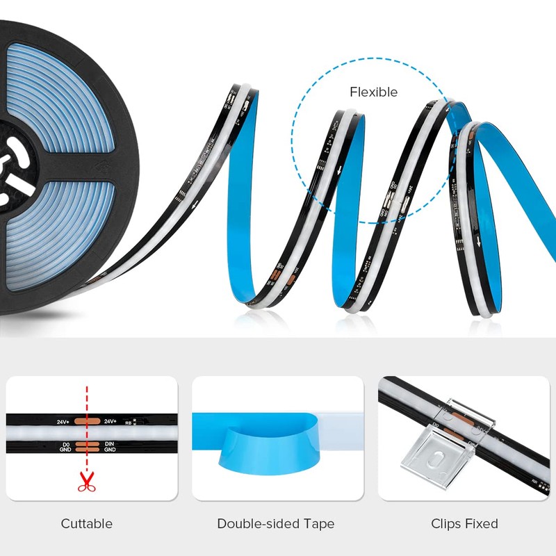 - Hochwertige Lampenperlen. Im Vergleich zu Streifen mit LED-Chips wie 5050SMD verwenden FCOB -Streifen FCOB-Perlen als Lichtquelle und sind mit Klebstoff beschichtet, um ein gleichm??igeres und konsistenteres Licht zu erzeugen, w?hrend FCOB RGB WS2811 LED-Streifen keine dunklen Flecken aufweisen, was eine gleichm??igere und hellere lineare Beleuchtung gew?hrleistet.(Spannungsabf?lle usw. sollten bei der offiziellen Verwendung bercksichtigt werden)