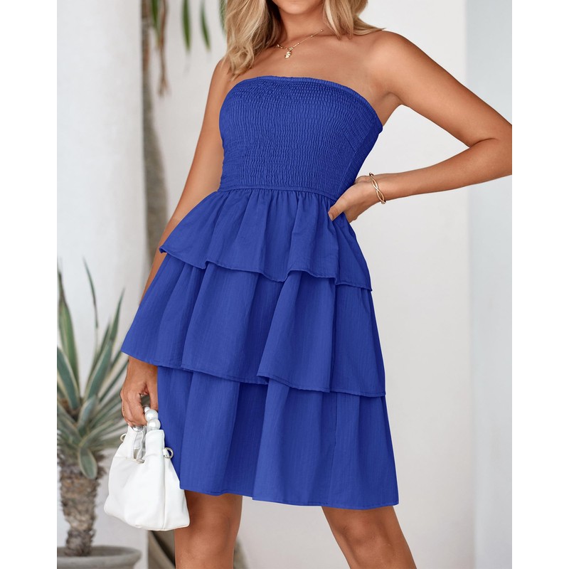 - FEATURES: Strapless Tube Dresses / Off The Shoulder Dress / Sleeveless Dress Women / Stretchy Smocked Bodice / Tiered Ruffle Dresses / Bobo Mini Dress / Sundress For Women