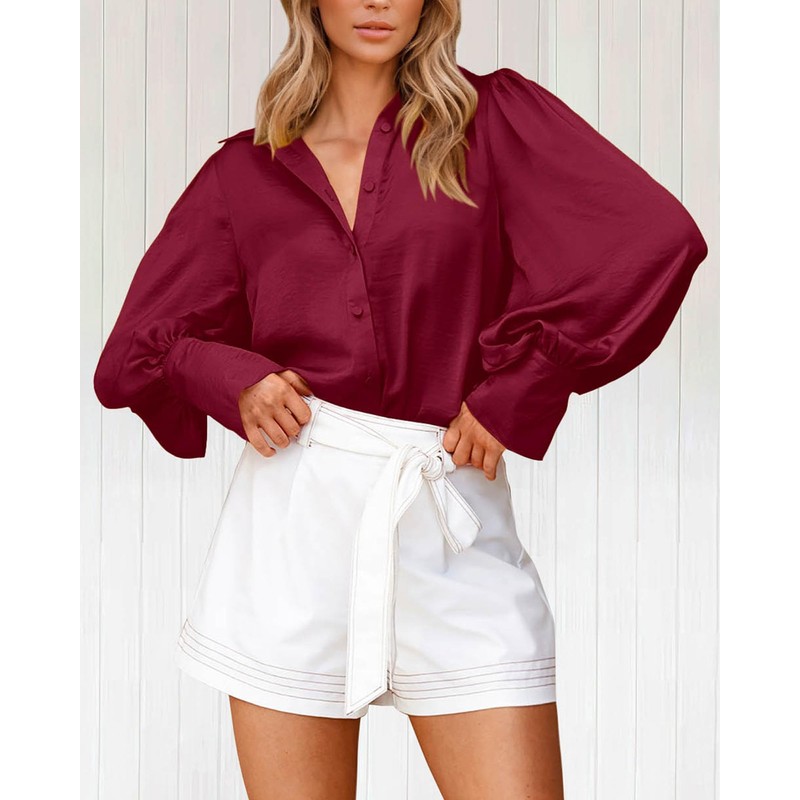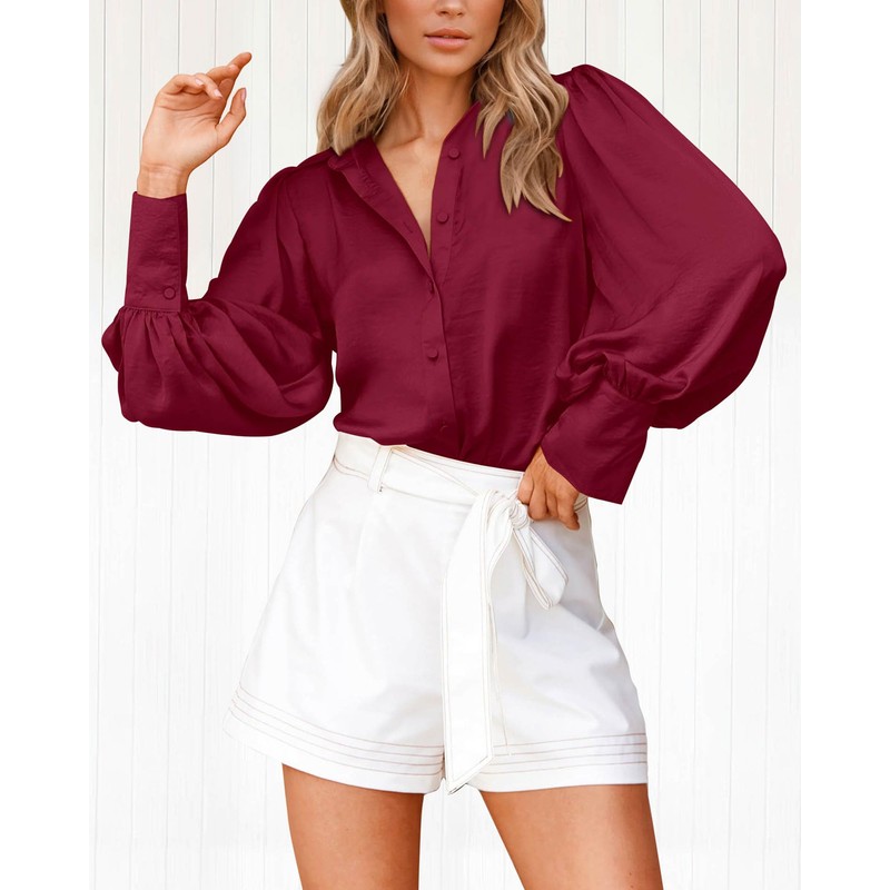 • FEATURES: S=US 4-6,M=US 8-10, L=US 12-14, XL=US 16-18, XXL=US 20 / Satin Tops For Women / Button-Down Shirts /Dressy Blouses For Women Fashion 2025 / Lapel V Neck / Puff Long Sleeve / Button Cuff / Shiny Silk-Like Texture / Classic Solid Color