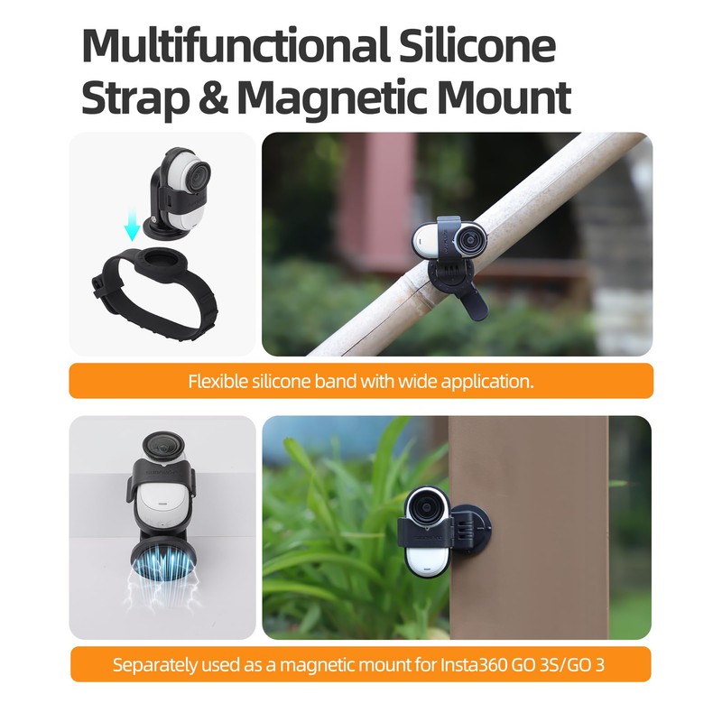 - Multifunctional silicone strap & magnetic mount for Insta360 Go 3/ Go 3S camera