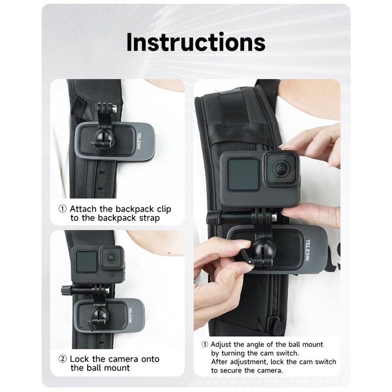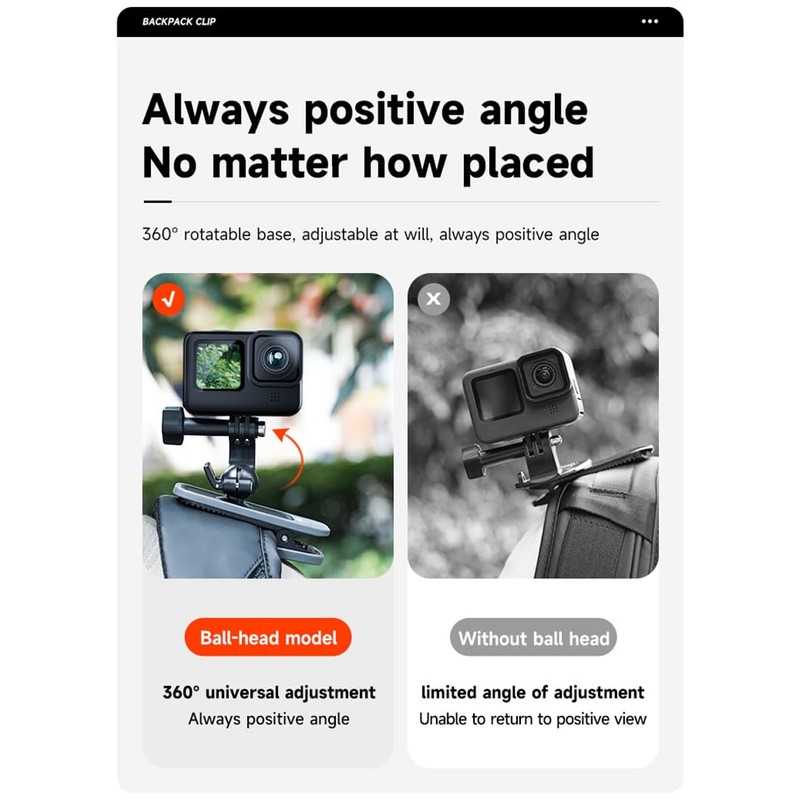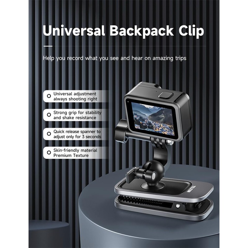 BTG Sports Camera Backpack Clip for DJI Pocket 3/Action 5 pro 4 3/Insta360 X4 X5 Go 3 3S Ace Pro 2 Backpack Mount Sports Camera Backpack Accessories