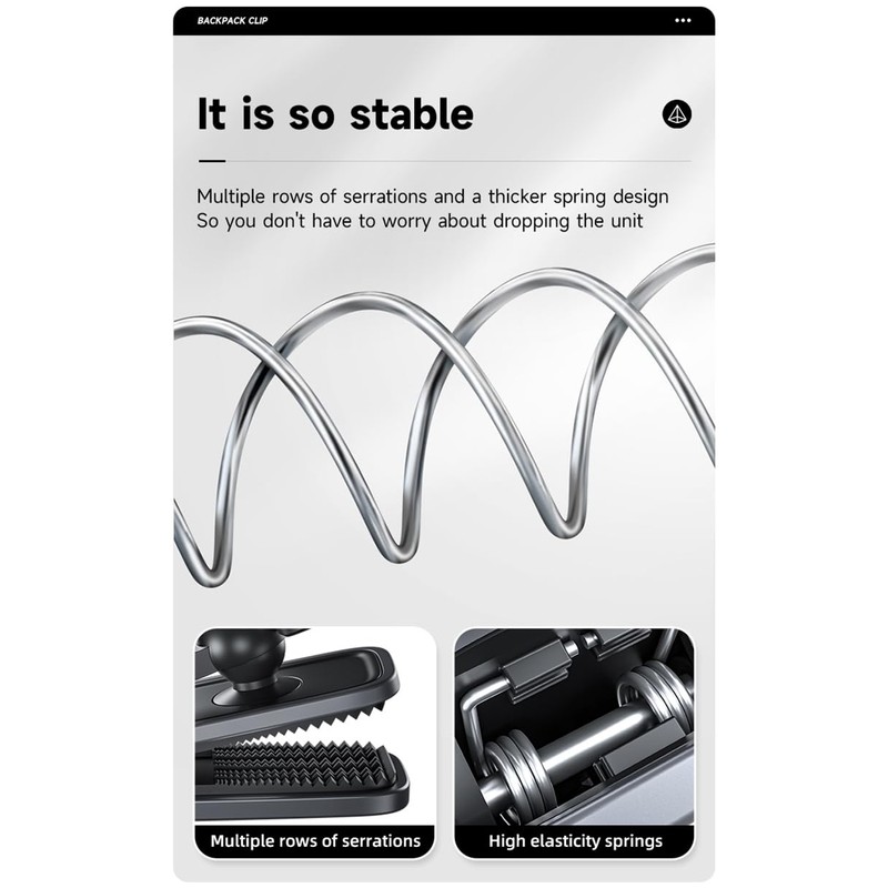 - The backpack clip is equipped with anti-slip card teeth inside, which can increase the friction, and the clip is not easy to shake