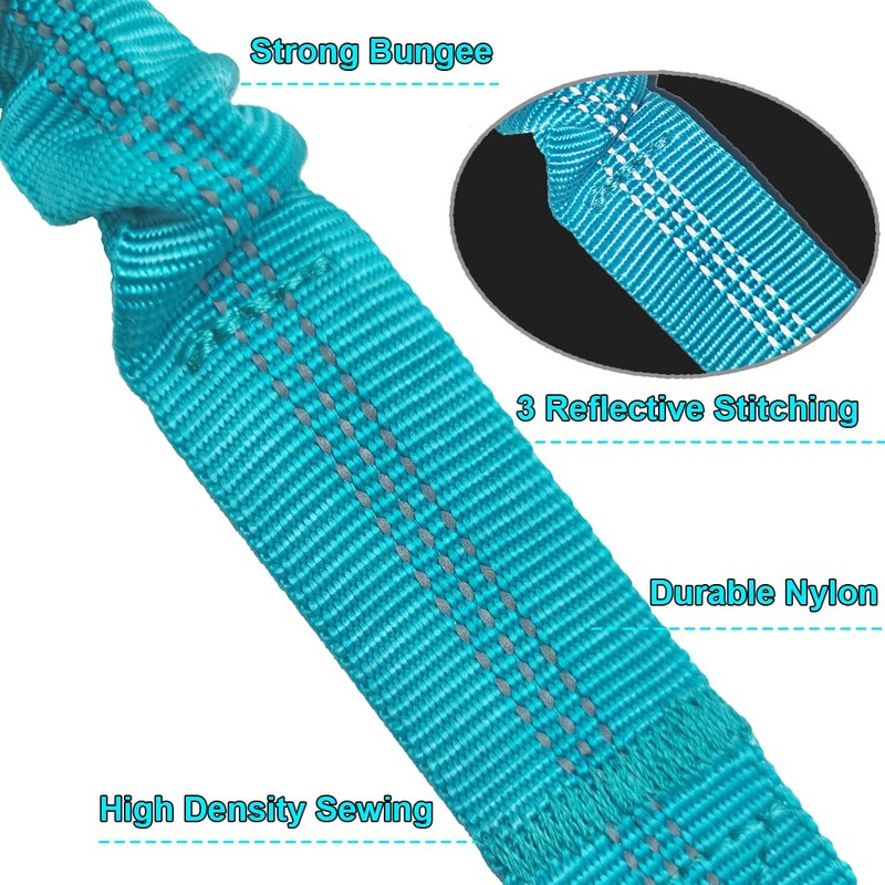 - The bungee leash attachment works well with any dog leashes, collars, harness to absorbs a lot force during dog walking, training or playing thus to reduce the risk of your shoulder and your dogs cervical/neck getting hurt