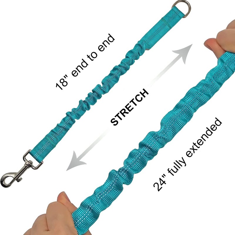- Elastic Dog Leash Extender: Measures 18” from end to end including hardware and lengthens to 24” when fully extended