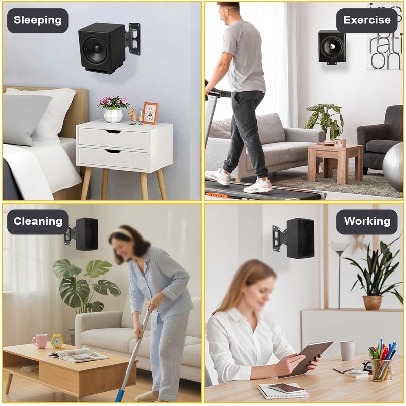 - Space-Saving Design: Free up valuable floor and shelf space by mounting your speakers on the wall. This not only creates a cleaner, more organized living area but also protects your speakers from accidental bumps. The sleek, low-profile design with a reinforced black coating offers a modern and minimalist look that blends seamlessly with any home decor and speaker style, making it both a functional and attractive upgrade.