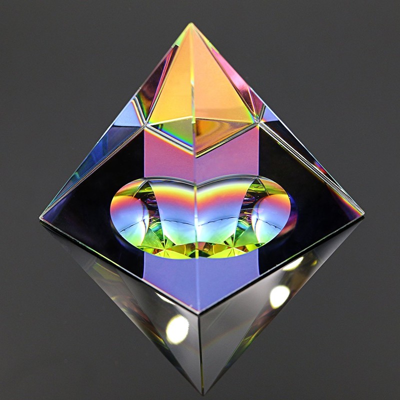 A beautiful, dazzling crystal pyramid with color coating, it will bring harmony to any room and eliminate negative influences.