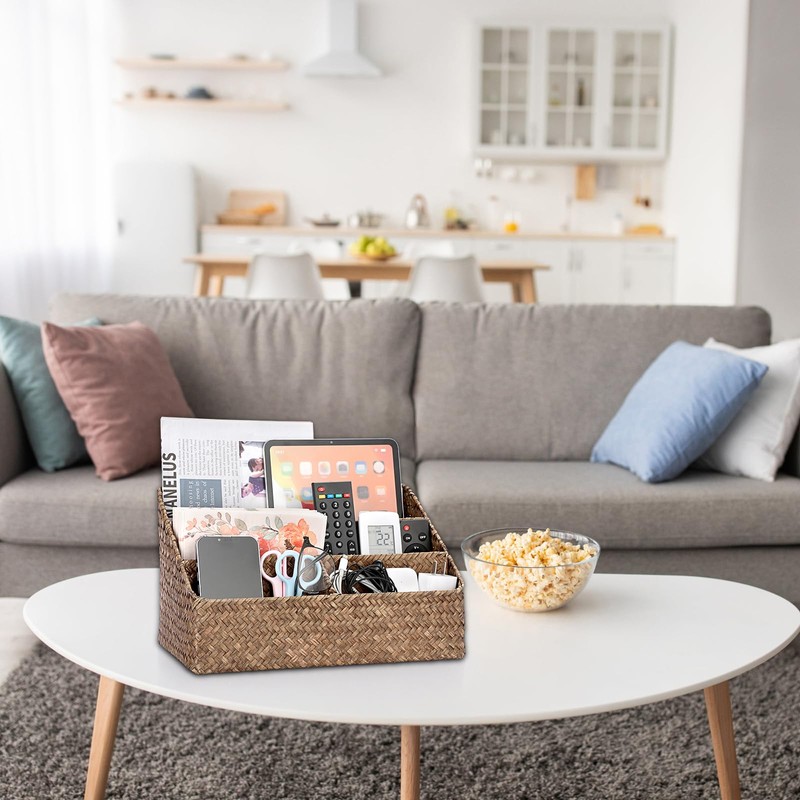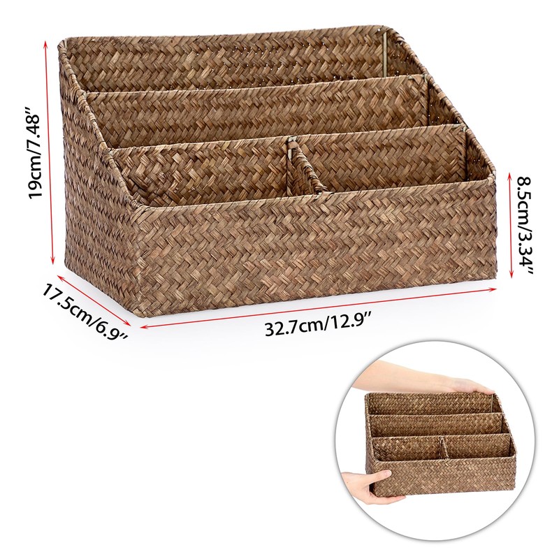 BTSKY Natural Seagrass Woven Wicker Desk Organizer,Mail Sorters with 4 compartments, Coffee