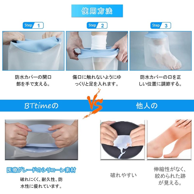 BTtime 防水ギブスカバー 足 お風呂カバー 包帯カバー 防水カバー 大人の足首用 防水 ソフトで快適 繰り返し使える 骨折 シャワー用