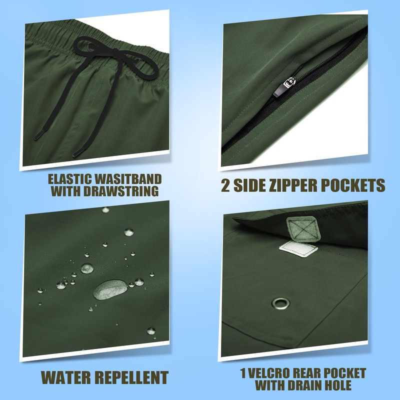 - 【2 In 1 Men's Swimsuit】Featuring a new and improved compression liner design, these men’s swim trunks are lined with a silky smooth, super-stretchy compression layer. The lightweight, ultra-supportive boxer brief lining is chafing-resistant, providing breathability and support, ensuring comfort, and preventing sand from sticking when wet.