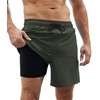 BUAVBO Mens Swim Trunks with Compression Liner Quick Dry Swim Shorts 2 in 1 Bathing Suits with Zipper Pockets, Army Green, Small