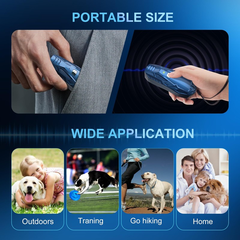 - 🐕【1 Button Control】: The stop dog barking device is easy to use, you just need to press & hold the button, it will emit ultrasonic to attract the dog’s attention and make them stop barking or bad behaviors.