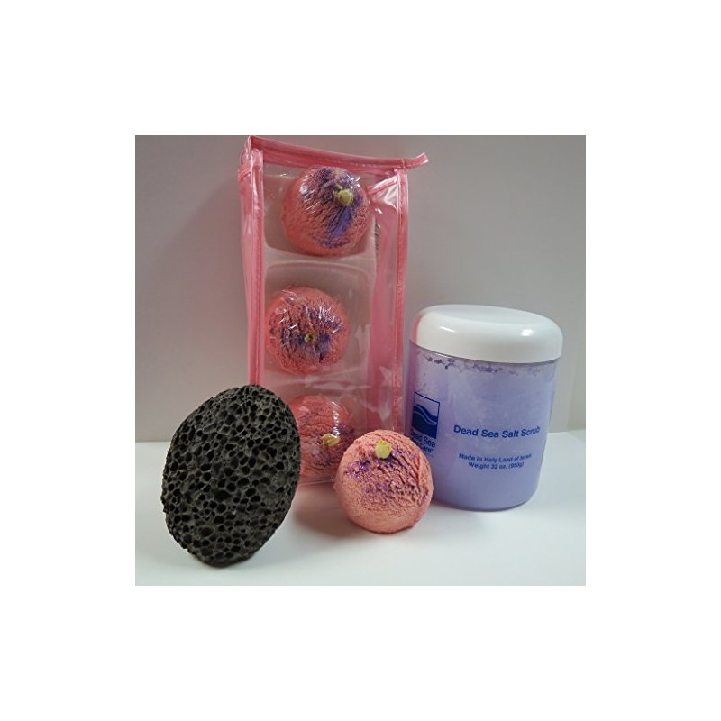 Bubble Bath Truffles: Raspberry Boom 3 Pack Bath Truffles, 32 oz Raspberry Dry Salt Scrub and Pumice Stone by Dead Sea Spa Care, Bubble Bath, Bubble Truffles, Bath Bombs