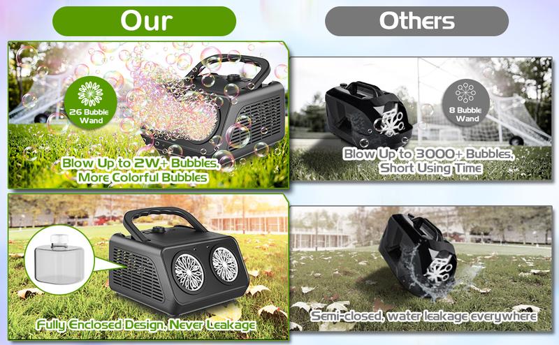 - 【Applicable to Multiple Scenes】- With a portable handle, it can generate a lot of bubbles in any scene, which is an artifact to adjust the atmosphere. Perfect for your holiday and birthday parties, can be used for backyard, lawn, park, beach or camping, BBQ. Also suitable for stages, weddings, graduations, and other outdoor events.