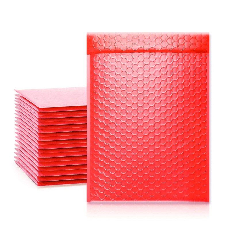 Bubble Mailers Padded Envelopes with Self Seal Waterproof Strip Poly Bubble Mailer Pack of 25 (red, #3 9x12 inch) - TONESPAC