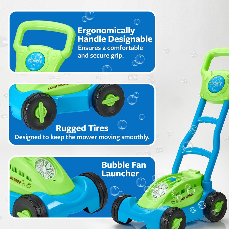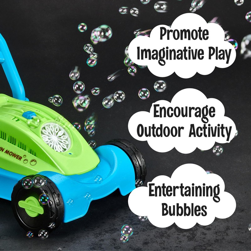 - WATCH THEM GROW: The bubble push mower for toddlers is more than fun—it helps kids develop crucial skills. They enhance their visual tracking abilities as they chase and pop lawn mower bubbles. Bubble toys make sunny days magical!