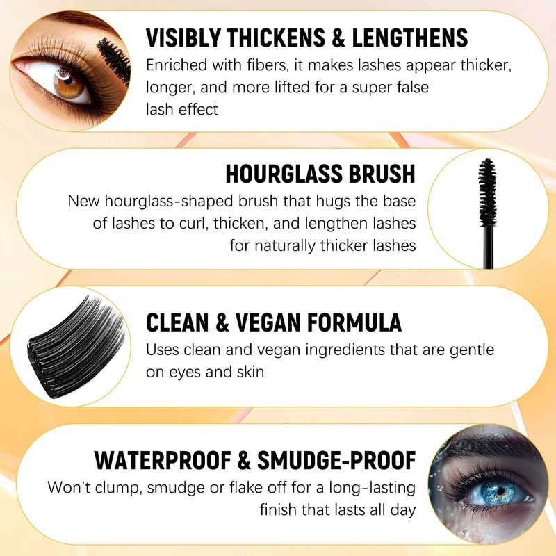 - 【Waterproof and Smudge-proof】The mascara will not clump, smudge or flake, and the lashes will only become thicker and look longer, and it will last all day