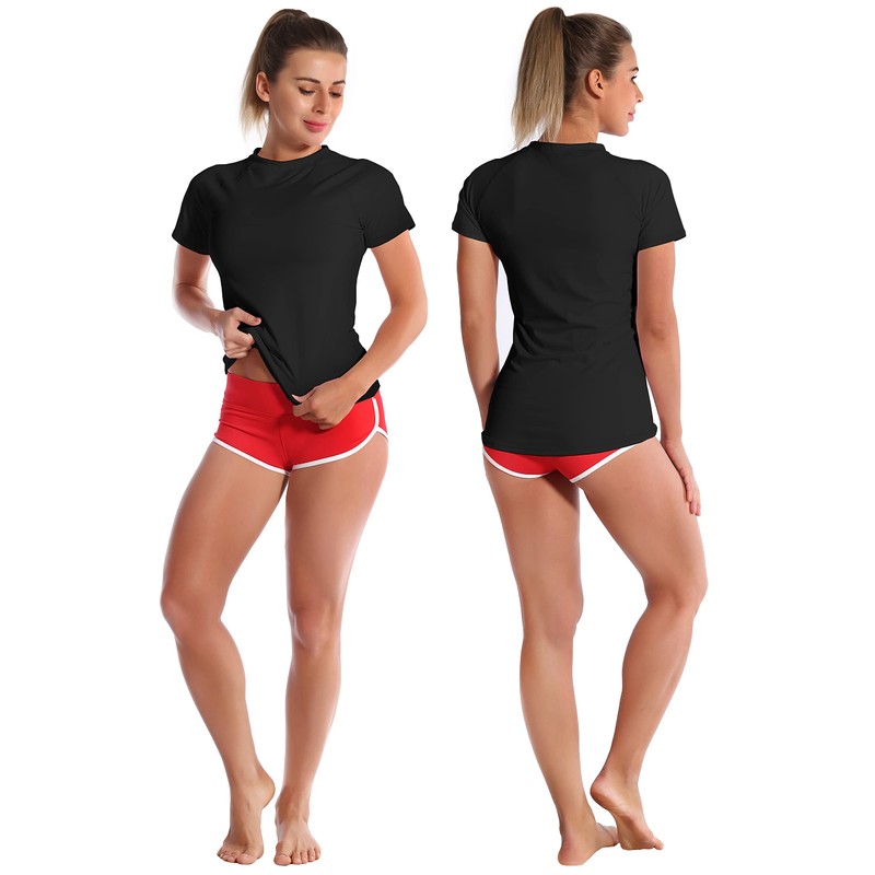 - Fashion styles: Solid color and color block available for these swim top or rashguard for women. Solid color simple but sexy and charming, color block creates a sporty and slimming effect. Both of them easy match your water accessories. Durable stretch swimming shirt boasts excellent shape and color retention.